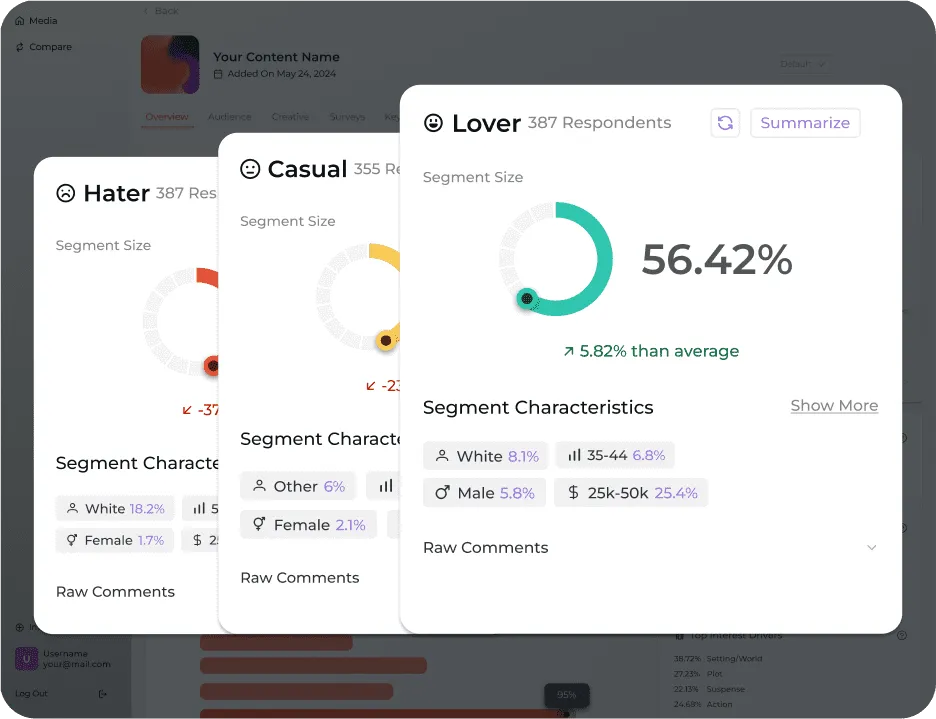 We identify key interest drivers/deterrents to consumption, segment audiences, measure engagement, awareness and intent, and predict social sentiment, velocity, consumption and other market trends.